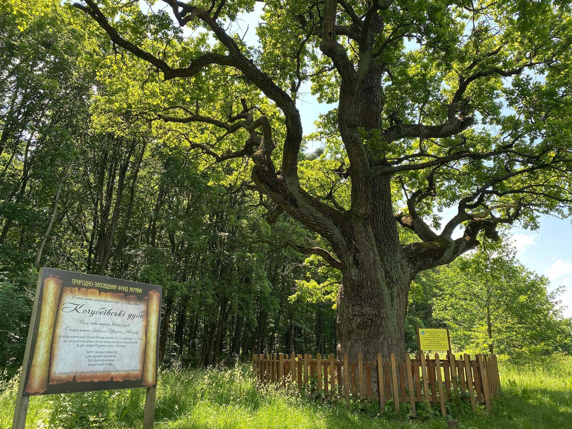 За тридцять кілометрів від Полтави розташоване селище Диканька, відоме завдяки унікальній природній пам’ятці — Кочубеївським дубам. Ці вікові дерева ростуть на території колишнього маєтку роду Кочубеїв і нині входять до складу регіонального ландшафтного парку «Диканський», перебуваючи під державною охороною.